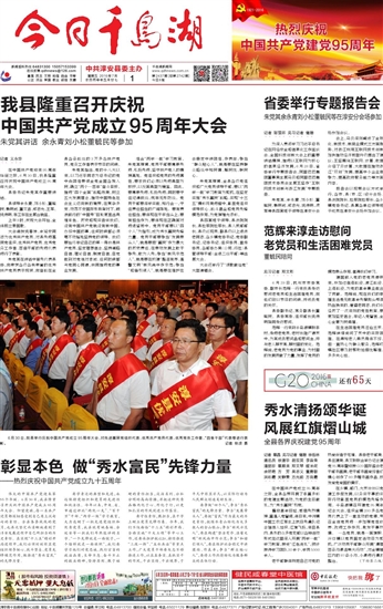 今日千岛湖 一版要闻 01 2016-07-011 2016年07月01日 星期五
