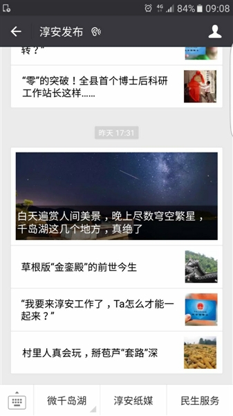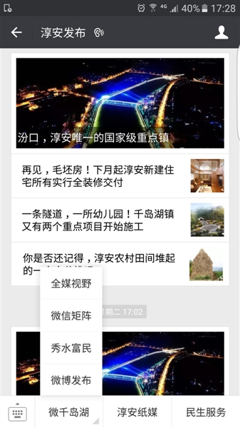 新调整后的“微千岛湖”板块包括全媒视野、微信矩阵、微博发布、秀水富民4个子版块。
