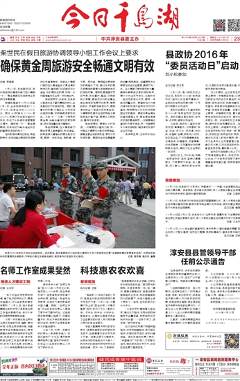 今日千岛湖 一版要闻 01 2016-09-231 2016年09月23日 星期五
