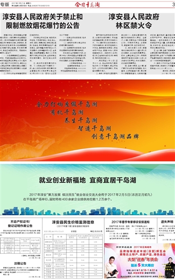 一、千岛湖镇建城区全面禁止燃放。环湖北路至鼓山口红绿灯处,新安东路至燕山收费站,千汾公路与千威公路交叉口红绿灯处,淳杨线上江埠治安岗亭,东南旅游码头范围以内的城区禁止燃放烟花爆竹(千岛湖镇周坑村除外)。