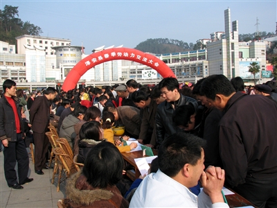 【2009年】大会主题:帮扶企业、保障企业、完善社保、促进和谐——“百企万岗”农民工招聘会。这次交流会进场企业146家,提供岗位数1万余个,推介创业项目40个,进场人数达2.6万余人,初步达成就业意向6139人。本届交流大会首次将创业项目展示会与就业交流大会结合在一起开展。