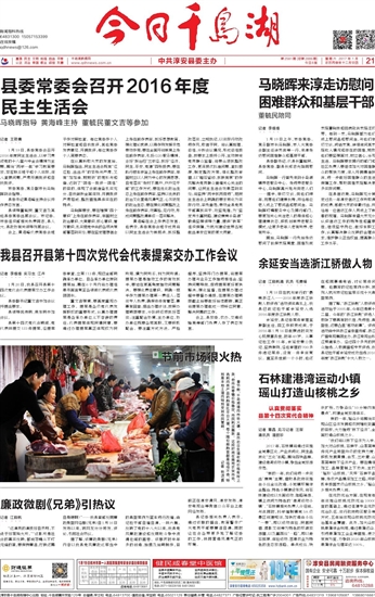 今日千岛湖 一版要闻 01 2017-01-211 2017年01月21日 星期六