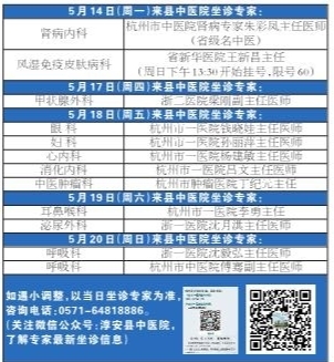 淳安县中医院(杭州市第一人民医院淳安分院)5月14日—5月20日专家门诊一览表~~~