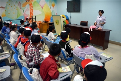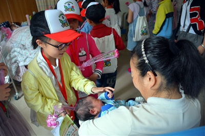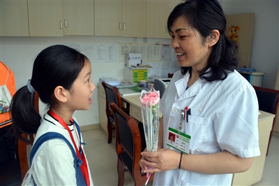 在送鲜花和祝福的过程中,不少小记者还瞄准了已经当妈妈的医生和护士们。“请问医生阿姨您的宝宝多大了?还记得当时生宝宝的情景吗?”“现在您是医生,能告诉我照顾宝宝的注意点吗?”一边问,一边记录,不少小记者的采访本上很快写满了采访笔记。