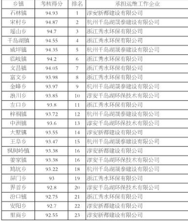 淳安县五水共治2018年度第一次联合督查(农村治污运维专项第二次)督查考核乡镇得分排名表