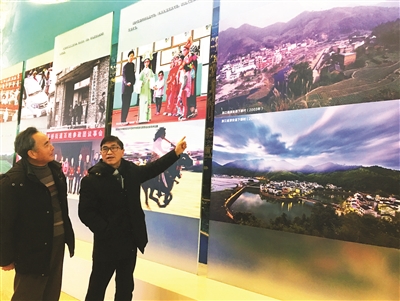 在“壮美篇章”展区的第一单元“希望的田野”,姜银祥站在两张下姜村新旧村景对比照前,自豪之情溢于言表,“你们看,我们下姜村这十几年的变化有多大,不仅生态越来越好,而且还实现了小康梦,真的是巨变啊。”