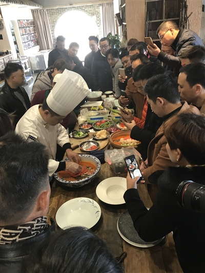 为了让淳安美食“接轨”高铁时代,我县组织全县餐饮协会会员和千岛湖高星级酒店主厨150余人参加了这次培训。培训期间,几位烹饪大师对千岛湖鱼头、湖鲜进行了改良加工,并加入健康饮食元素,现场制作了七道菜肴,一边制作一边为现场观摩学习人员进行创意解析,希望打破千岛湖鱼传统的“一鱼两吃”做法,使每道菜成品后都“色香味”俱佳,让人垂涎欲滴。
