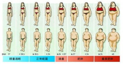 BMI指数最常用于衡量肥胖的程度,作为大众纤体指标,根据身高和体重进行计算:体质指数(BMI)=体重(kg)÷身高^2(m),对于亚洲人而言BMI在18.5-23.9内为正常体重,大于这个范围为超重。