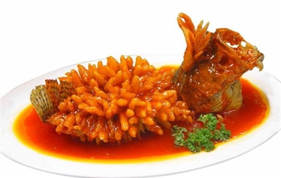 说了这么多,赶紧上原料吧。主料:桂鱼1000克。辅料:笋丁、香菇、豌豆、虾仁。调料:干淀粉、番茄酱、鲜汤、糖、香醋、酒、盐、蒜瓣末、猪油、麻油。