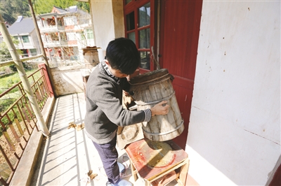 眼下正值油菜花盛开季节,4月1日,在富文乡重坑村,小方正在整理蜂箱,每年油菜花盛开季,是养蜂人一年四季当中最繁忙的时候,他今年利用空闲时间在自家二楼养了20多箱蜂,预计年收入可达2万多元。