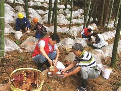 为推广毛竹林下仿野生种植灵芝的种植模式,大墅林业中心站还创新推出了“合作社+农户+企业+院校”林下经济发展模式,即林业合作社流转农户林下空地,种植灵芝,采收后与农户分红。