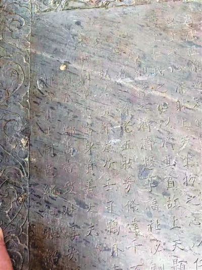 这通碑为毛家下泮塘义门碑刻,发现时碑体泥土覆盖。经小心清洗,真容露出,原来是明朝弘治年间“恩赐碑”。碑额及碑身左右刻饰花纹,中间为碑文。碑文由淳安(梓桐)致仕老人南京工部尚书胡拱辰撰文,遂安乡贡进士纯和(纯峰大路口)张韶书写,于弘治五年刻碑立石。
