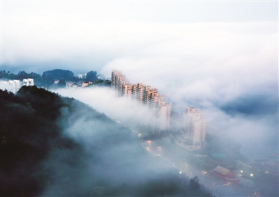 连日来,清晨的千岛湖城区云雾缭绕,山城在飘渺的云雾间宛若仙境。