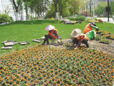 据了解,从四月初开始,该中心从外地选购多种鲜花美化千岛湖。在千岛湖阳光路大桥头两侧景观带里有10多位园林人员正紧张有序地种植鲜花。“这次种植鲜花品种有一串红、孔雀草、矮牵牛、海棠等7个品种,为确保鲜花的成活率,我们有专职养护鲜花人员进行后续养护管理,这项鲜花种植工程四月底前完工,40多万株鲜花迎五一”。一标段部门负责人宋长春说。