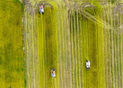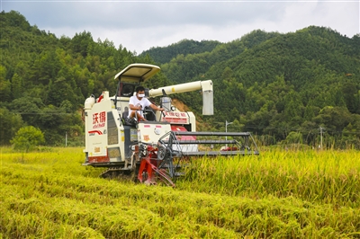 昨日,安阳乡民安家庭农场早稻种植基地机声隆隆,农民趁晴好天气,抢收早稻,确保颗粒归仓。据民安家庭农场主郑明仁介绍,今年农场栽种早稻900亩。
