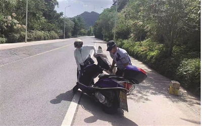 近日,县交警大队六中队民警在巡逻途中发现一辆摩托车侧翻在路边,一名女士站在一旁手足无措。经询问得知,该女子因摩托车爆胎导致侧翻,惊恐之中不知所措。民警上前扶起摩托车并帮打了求救电话,直至其脱离困境。车主对交警的及时救助连声感谢。