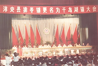 1991年9月,当第一任千岛湖镇党委书记钱彭亨将“千岛湖镇”的牌子小心翼翼地挂到办公楼大门上时,早已聚集于此的人群中爆发出热烈的掌声,所有人的脸上都满溢着喜悦。