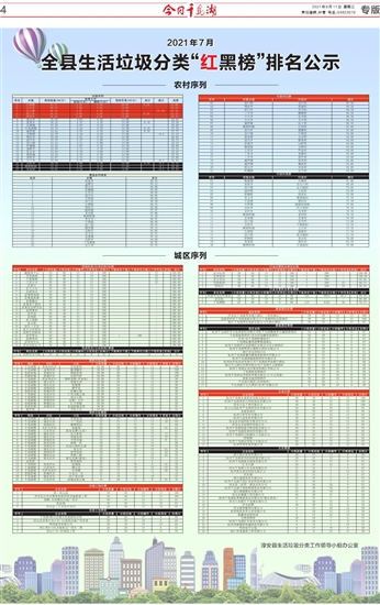 全县生活垃圾分类“红黑榜”排名公示