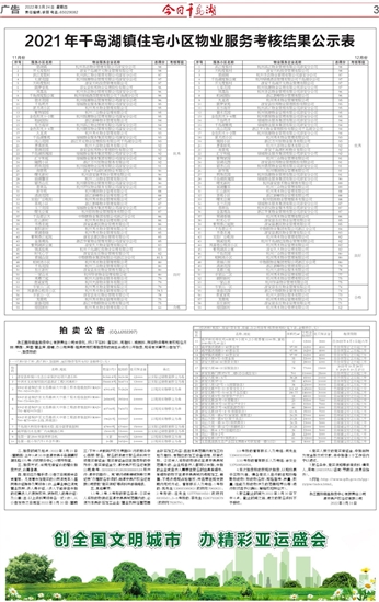 2021年千岛湖镇住宅小区物业服务考核结果公示表