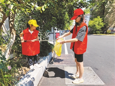 9月17至18日为双休日,在火炉尖社区人民路,千岛湖镇第六小学一(4)班多位同学穿上红马甲,带上工具,跟着志愿者一起在马路上、花坛里捡拾垃圾,劝导不文明行为,助力全国文明城市创建。