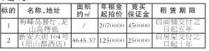 一、拍卖标的:房屋(餐厅、酒店)租赁使用权(见下表,金额单位:元)