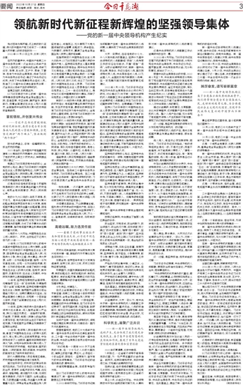 ——新一届中央领导机构汇集了全党各方面优秀的执政骨干,他们将带领全党全军全国各族人民,走好新的赶考之路,为全面建设社会主义现代化国家、实现中华民族伟大复兴的中国梦而不懈奋斗