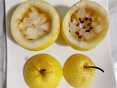 冰糖雪梨以雪梨、冰糖一起慢火炖制而成,不仅味道甘甜可口,还具有生津养胃、清热化痰和止咳的功效。而在淳安人的手中,这种几乎遍布大江南北的糖水,必须要装在白色的搪瓷罐中,再放在烧红的炭火上慢慢煨制,才能做出最甜的滋味。