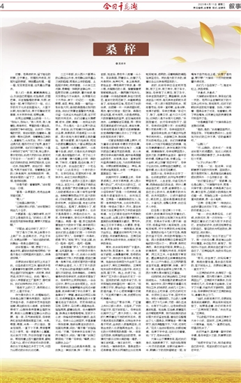 一切都在桑园的绿幕上展开,成为童年这部电影中最恢宏的场景。母亲是这部电影中的主角之一,她喜欢把自己藏在茂密的桑园。我从未想过母亲会离开桑园,离开由桑园圈出的老家。我觉得,她会一直等在那片盛满绿意的土地,为我标明桑梓故地。只要我朝那桑园喊上一声妈,桑树便会摇晃起来,会有一个声音会从里面答应:“嗳——”