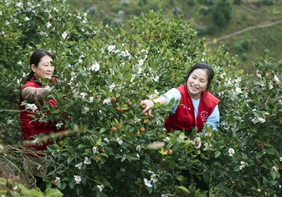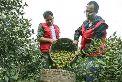 近日,汾口镇宋京村千亩油茶全面进入采收期,汾口林业站科技服务小分队和村民穿梭林间采摘油茶果。据悉,目前我县油茶种植面积2万余亩,采取“公司+基地+农业专业合作社+农户”的合作模式,有效推动油茶产业化发展,让油茶树成为老百姓的“摇钱树”。