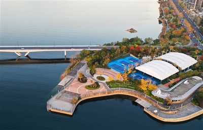 当前,我县深入实施嵌入式体育场地进公园、进绿地公益体育设施改造提升项目,以“最美体育”助燃全民健身。图为位于千岛湖畔的嵌入式网球公园。通讯员 唐家凯