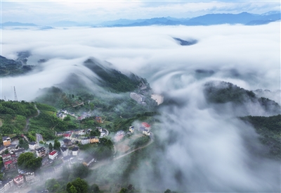 近日,千岛湖镇长岭上自然村出现了美丽的雨后云雾景观,从高空俯瞰,峰峦之间烟岚云岫,变幻多端,非常壮观。通讯员 王建才