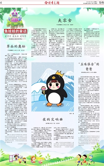 点评:小作者用生动的笔墨描绘了一幅村夜的美景,丰富的想象让文章读起来妙趣横生;同时,也能从字里行间感受到作者对乡村的喜爱之情。(点评老师 张露萍)