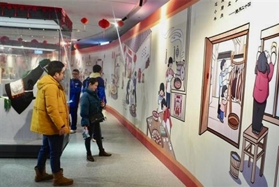 走进淳安博物馆一楼临展厅,一幅36米长的原创手绘长卷映入眼帘,做腊货、打麻糍、吃年夜饭、守岁、拜年……这些过年的生活场景通过卡通年画生动展现,将人置身于浓浓的春节喜庆氛围当中。
