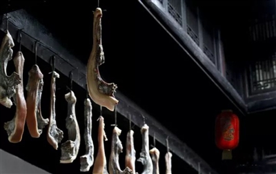 火腿选用农户家土猪肉,根据传统工艺,腌制、发酵等多个环节而成。