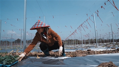 近日,在汾口镇天林庄村,村民们趁着晴好天气,种下一株株丝瓜苗。嫩绿新苗错落排列,勾勒出一幅充满希望的田园盛景。记者 方杰 通讯员 鲍杭琴