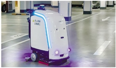 “小白”也是居民取的昵称,它来自杭州它人机器人技术有限公司,专门负责地下车库的清扫。与重达半吨的“小黑”相比,“小白”显得小巧、灵活,配备70升清水箱和40升污水箱,单次作业面积约3400平方米。“在AI算法、激光雷达、超声波传感系统的助力下,它能自主完成地面清扫、洗拖、吸尘、消毒及速干处理等工作。”该公司技术人员介绍,“小白”还很聪明,能自动前往水站补水,会回头把汽车驶离的车位打扫干净。