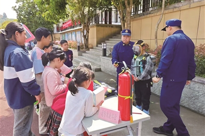 近日,在屏门乡中心小学的操场上,一场由临岐镇专职消防队带来的“移动少年宫之消防救援体验”活动,让同学们近距离接触消防工作。活动中,孩子们争先恐后地举手体验,在消防员的帮助下,“全副武装”变身小小消防员。通讯员 童晓鹏 王毓华