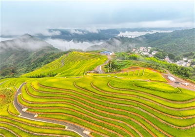 梯田的设计不仅优化了生态环境,新增了耕地面积,使独特的丘陵地貌发展成为特色种植的天然优势,更将垂直绿化的概念融入其中,通过“水稻+油菜花”的轮作模式,把农田种成了风景。