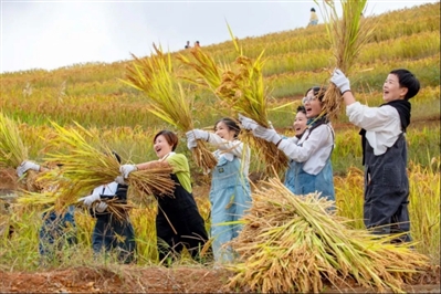 2024年秋,一场别开生面的割稻活动在长岭上上演。