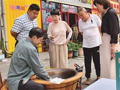 活动中,杭州市非遗传承人陆发田现场炒制茶叶,众多游客纷纷围观记录,“为什么炒茶时要不断翻动茶叶?”“温度要如何精准把控?”面对游客们一连串充满好奇的提问,陆发田边炒茶边耐心解答。他详细讲解着杀青、揉捻等每一道工序的作用和技巧,还不时邀请游客近距离观察茶叶形态的变化。来自上海的游客王女士感叹:“以前只知道喝茶,今天亲眼看到手工炒茶的全过程,还学到这么多知识,真是太有意思了!原来一杯好茶背后,藏着这么多讲究。”