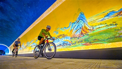 千岛湖隧道艺术馆,是全国首个开放式隧道艺术馆,将千里江山壁画馆把宋代王希孟著作《千里江山图》搬进了隧道。