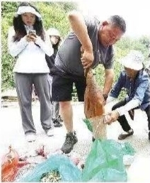 福缘居老板郭连宝则蹲在地上跟老人唠嗑:“下次有黄鳝记得给我留着,我们福缘居做响油鳝糊就缺这东西!”