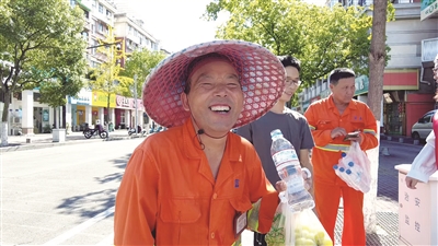 随后,吴君卫将一串沉甸甸、绿莹莹的葡萄递到环卫工人代表手中。“大姐,天气太热了,吃点新鲜葡萄,润润喉、歇口气!”他言语真诚。随后,县环卫保障中心负责人向吴君卫递上一面锦旗,感谢他的慷慨捐赠。吴君卫接过锦旗,郑重地说,“这只是开始,未来我们还会继续关注环卫工人,为他们提供更多力所能及的帮助。希望这份小小的爱心,能传递出社会对‘城市美容师’的尊重与认可。”