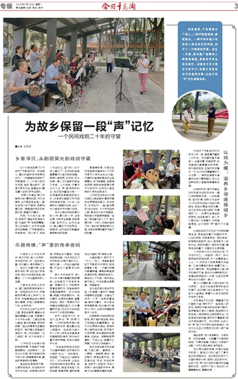 “我爸爸到现在还在学习乐器表演呢,他可是我们戏班的‘粉丝’。”受此感染,她坦言:“不能让这乡音断在这代。”这份使命感,让她主动扛起创新传承的责任,每逢节假日,就组织年轻人协助拍摄、剪辑视频,借助新媒体让戏曲的“声”跨越山海。