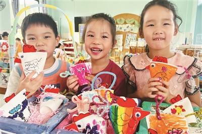 近日,中洲镇中心幼儿园大班开展了以“‘盒’你一起 变废为宝”为主题的垃圾分类宣传活动。活动中,老师引导孩子们将洗净的牛奶盒进行裁剪、绘画和粘贴,制作成一个个栩栩如生的“小公鸡”手工作品,让他们亲手体验“废品”焕然一新的乐趣。